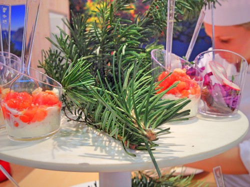 Auf der Messe präsentierten sich Länder & Regionen mit ihren kulinarischen Spezialitäten (von superspannend bis ultrakurios), aber auch Hersteller von Küchengeräten, Blumenhändler, verschiedene Verbände und vieles mehr. An den meisten Ständen konnte man für einen kleinen Preis zwischen 50 Cent und 2 Euro eine hübsch angerichtete Probierportion der Köstlichkeiten bekommen…vom Elchschnaps über belegte Schinkenbrote bis hin zu Kuchen, Fisch, Schokolade, Eis und alles, was man sich sonst noch so durcheinander vorstellen kann.