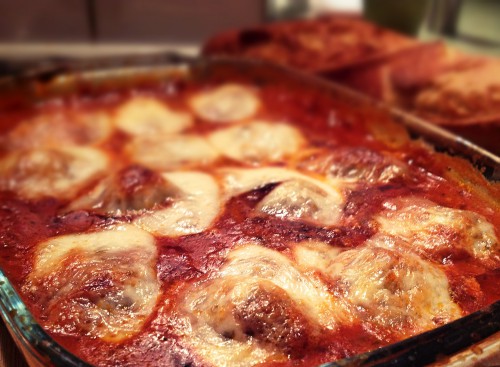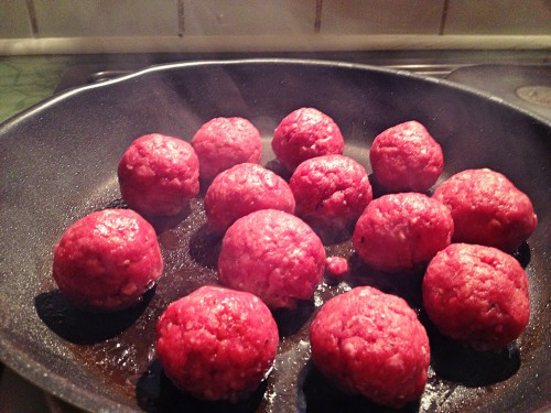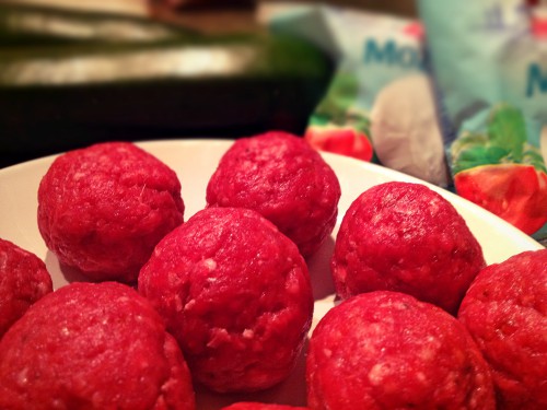 Die überbackenen Hackfleischbällchen habe ich selbst mal abgewandelt, nehme jedoch einfach eine Packung/ein Glas gute Tomatensauce oder mache mir (je nach Zeit&Lust) selbst eine.