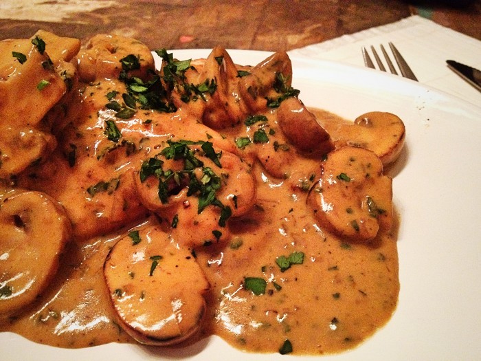 Ich hatte keine selbstgemachte Gemüsebrühe mehr und wollte nicht zum Glas greifen. Darum habe ich die Pilze nach dem Anbraten auf kleiner Flamme geschmurgelt, wobei sie ordentlich Wasser lassen 🙂 Das Pilzaroma ist so noch ein wenig mehr in die Sauce rein und das Pilzwasser hat auch die Farbe Richtung dunkelbraun beeinflusst. Als Flüssigkeit habe ich also nur Sahne zugegeben und ein wenig eingekocht und WOW. LECKER! Tolles Rezept!