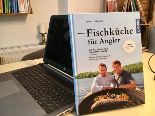 Als ich es ausgepackt habe, musste ich erst mal herzhaft lachen (was nicht so passend war, denn ich saß mitten einem Workshop)… das Buch heißt: „Fischküche für Angler“. Soweit so gut, nur leider bin ich kein Angler und das Ausnehmen von Fischen ist auch sonst auf keinem erdenklichen Weg zu meinem Hobby geworden. Aaaaaber: Mr. Jo ist Angler! Ich habe das also einfach mal als Einladung verstanden- er angelt, ich koche. Richtig?