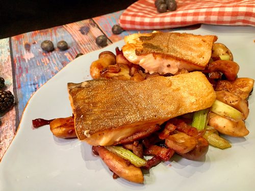 Förster meets Fischer: Fisch mit Beeren und Pilzen aus der Pfanne