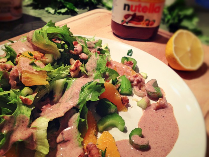 1. Wow…das nenn ich mal Abwechslung in der Küche…das Nutella-Dressing werde ich heute Mittag ausprobieren…bin schon gespannt!