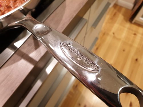 Aber klar: es ist die Demeyere „Industry“ in 32 cm. Die Proline ist tatsächlich nochmal etwas teurer, aber ich hab noch nicht nachgelesen, was der Unterschied ist. Die Industry lässt wirklich nichts vermissen. In 32 cm muss man allerdings bedenken, dass sie (durch den Griff auf der Kopfseite) in einige Backöfen schon nicht mehr reinpasst…falls einem das wichtig ist. Der Griff ist aber sinnvoll, denn das Ding ist ECHT schwer 😉
