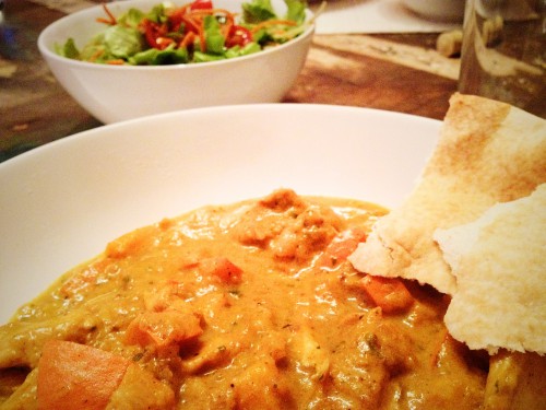 Ich koche ja wirklich gerne, aber es war auch mal sehr schön, sich eine Woche lang am Buffet auszutoben…aber heute hat mich die eigene Küche wieder und ich habe auch gleich ein superleckeres Rezept für euch! Wer keinen Kürbis mag, kann diesen auch austauschen, Kartoffelwürfel würden ebenso passen, oder auch in Scheiben geschnittene Möhren. Aber mit Kürbis schmeckt es wirklich super und tatsächlich bekommt man (hier vor allem in Bioläden) auch noch ganz gut kleine Hokkaidos.